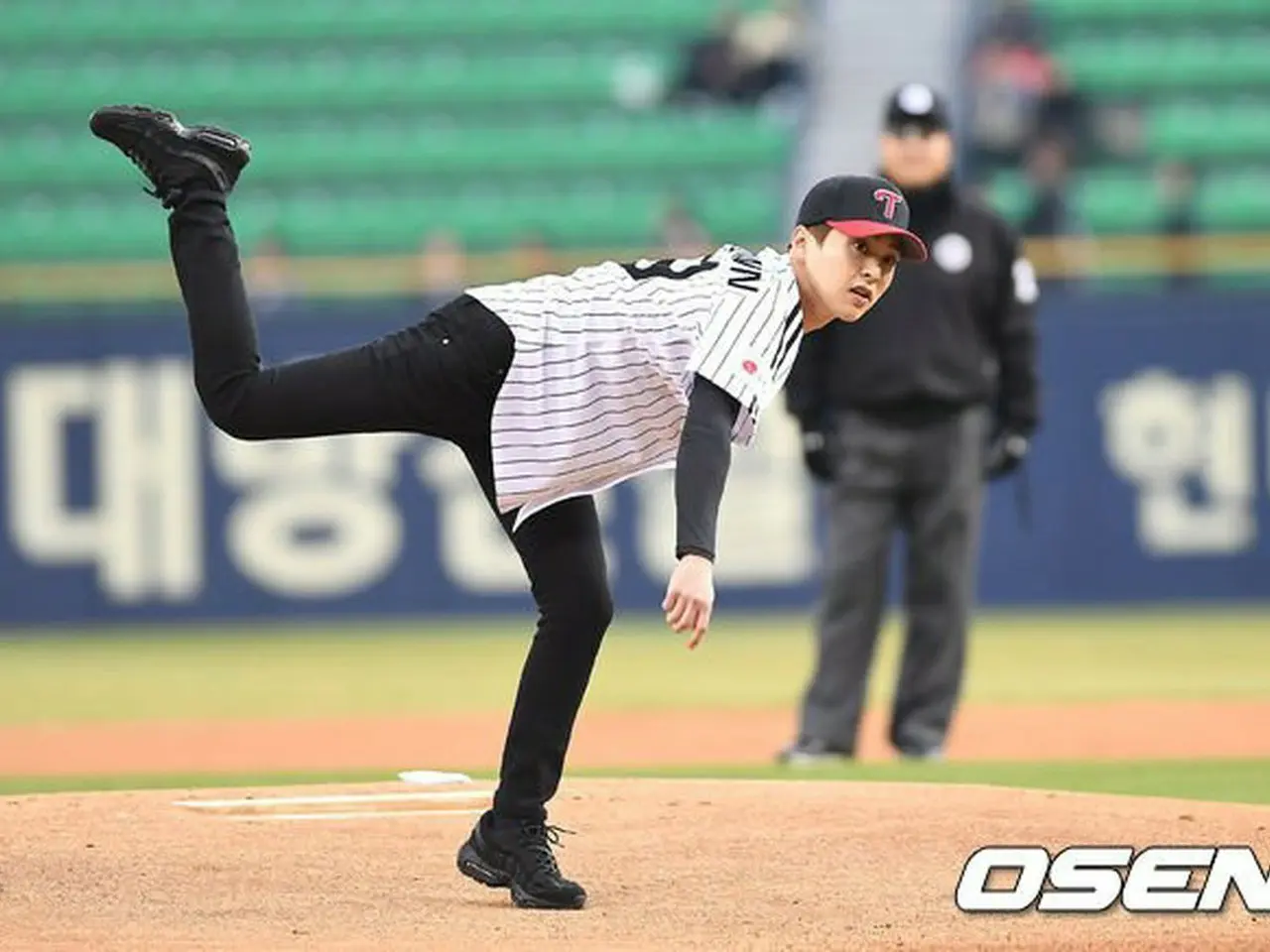 EXO シウミン Xiumin、プロ野球の始球式に参加。ソウル蚕室(チャムシル)球場。