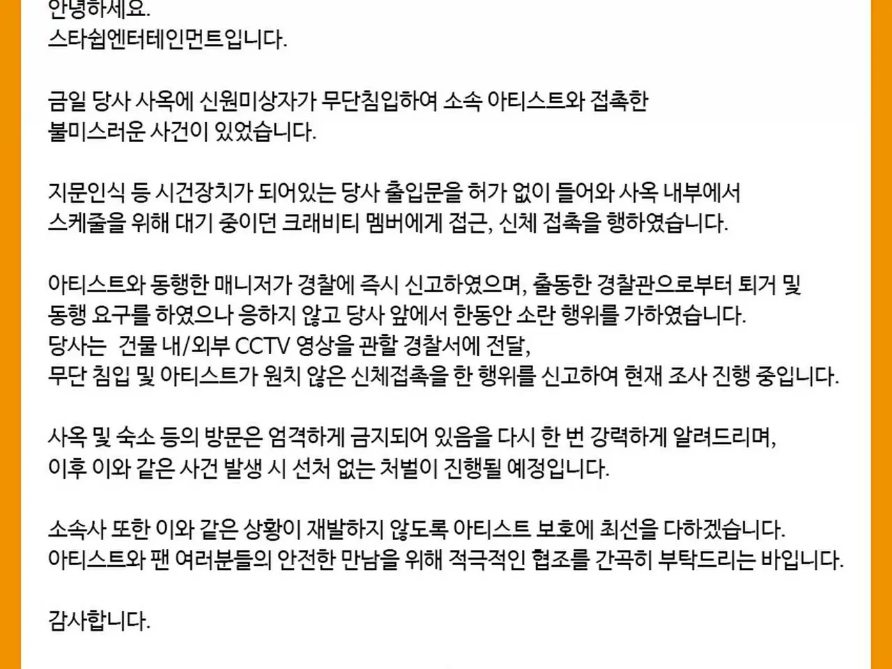 CRAVITY のメンバー、事務所に無断侵入した女から強制わいせつ被害。警察調査中。事務所「善処なし