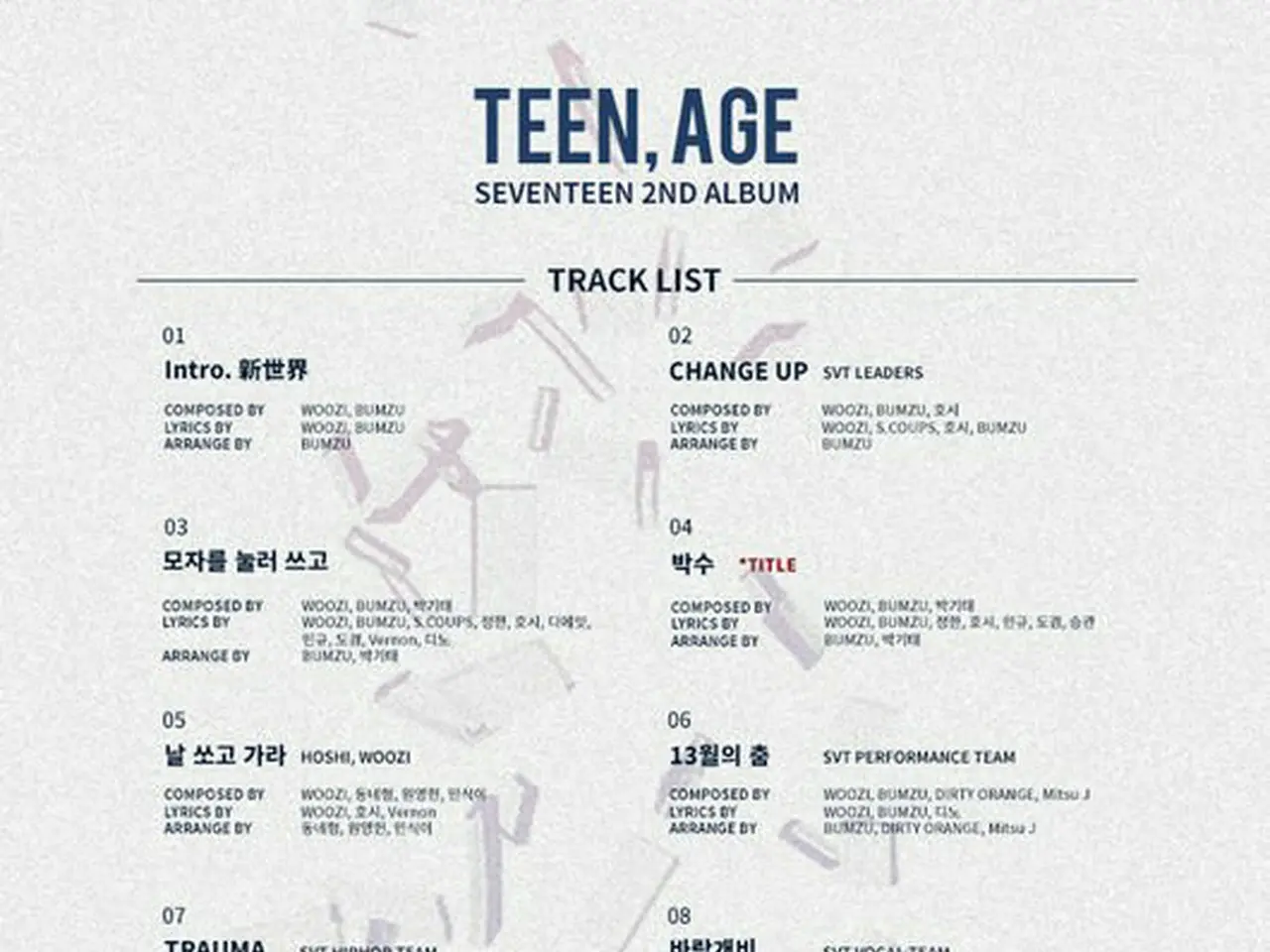 SEVENTEEN、リスト公開。