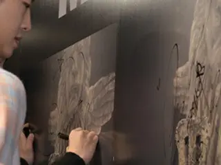 パネルにサインを入れる「B.A.P」メンバーたち