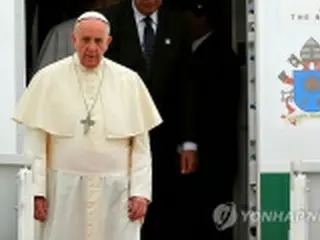 ソウル空港に到着したローマ法王=14日、ソウル(聯合ニュース)
