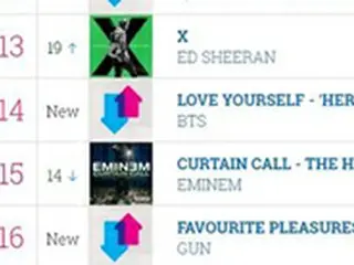 韓国ボーイズグループ「防弾少年団」のニューアルバム「LOVE YOURSELF 承 ‘Her’」がイギリス・オフィシャルアルバムチャートで14位、タイトル曲「DNA」がシングルチャート90位にランクインした。(提供:OSEN)