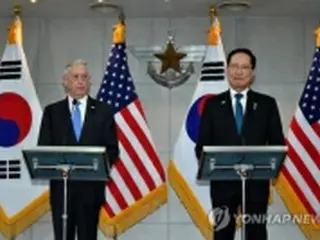 会談開始前にあいさつを述べる宋長官(右)とマティス長官=28日、ソウル(聯合ニュース)
