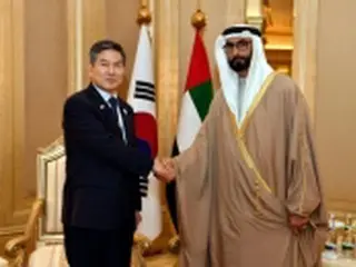 握手を交わす鄭氏(左)とボワルディ氏(国防部提供)=(聯合ニュース)
