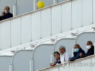 客室のバルコニーに出た乗船客ら=10日、横浜(ロイター=聯合ニュース)