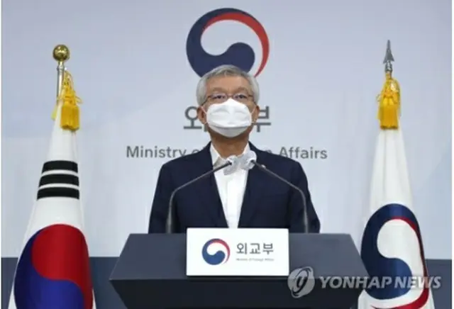 韓日間の入国制限措置の緩和について発表する李泰鎬(イ・テホ)外交部第2次官=6日、ソウル(聯合ニュース)