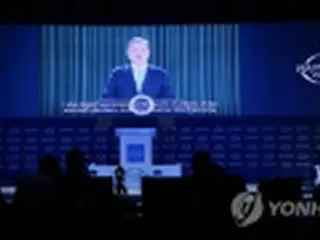 昨年11月に開催された済州フォーラムの開会式でビデオ演説する韓国の文在寅(ムン・ジェイン)大統領(資料写真)=(聯合ニュース)
