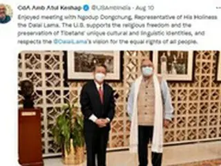 インド駐在のケシャップ米国大使がツイッターにあげた「ダライ・ラマ14世側の人物との接触写真」(画像提供:wowkorea)
