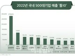 韓国の500大企業の売上高トップ10。単位は10億ウォン。左からサムスン電子、現代自動車、ポスコホールディングス、LG電子、起亜自動車、韓国電力公社、ハンファ、SKハイニックス、LG化学、現代モービス(画像提供:wowkorea)