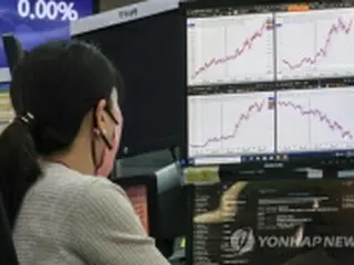 ハナ銀行本店のディーリングルームのモニターに表示された為替レート=6日、ソウル(聯合ニュース)