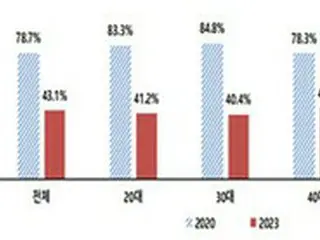 直近5年間の、年齢別による韓国商品の購入経験に関する比較 。左端は全体(画像提供:wowkorea)
