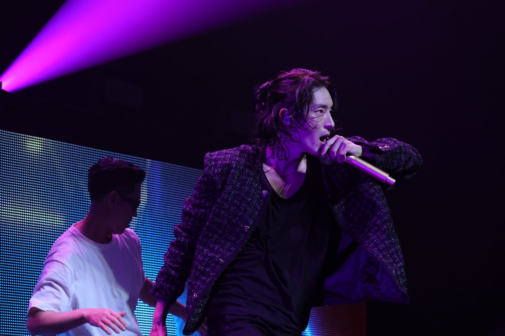 「My Lady」で甘い歌声を披露しながら登場したイ・ジュンギをファンは大きな歓声で迎えた。「日本のファンのみなさん、一緒に行きましょう!」の掛け声とともに爽やかな曲調の「Now」と「For Us」では4年ぶりに集まったファンと心を一つにし舞台を楽しんだ。続いての「Geek In The Pink」では先ほどまでの曲とは変わりセクシーな歌声で多彩な魅力を発揮した。