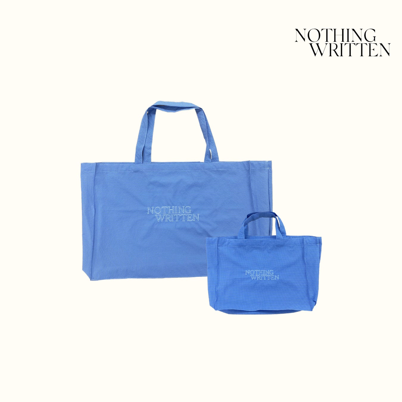 ポップアップ期間中、店頭にて<ナッシングリトゥン>の商品を税込27,500円以上お買いあげのお客さまに、「Blue check eco bag mini」、税込38,500円以上お買いあげのお客さまに、「Blue check eco bag」を差しあげます。数に限りがございます。無くなり次第終了となりますのでご了承ください。