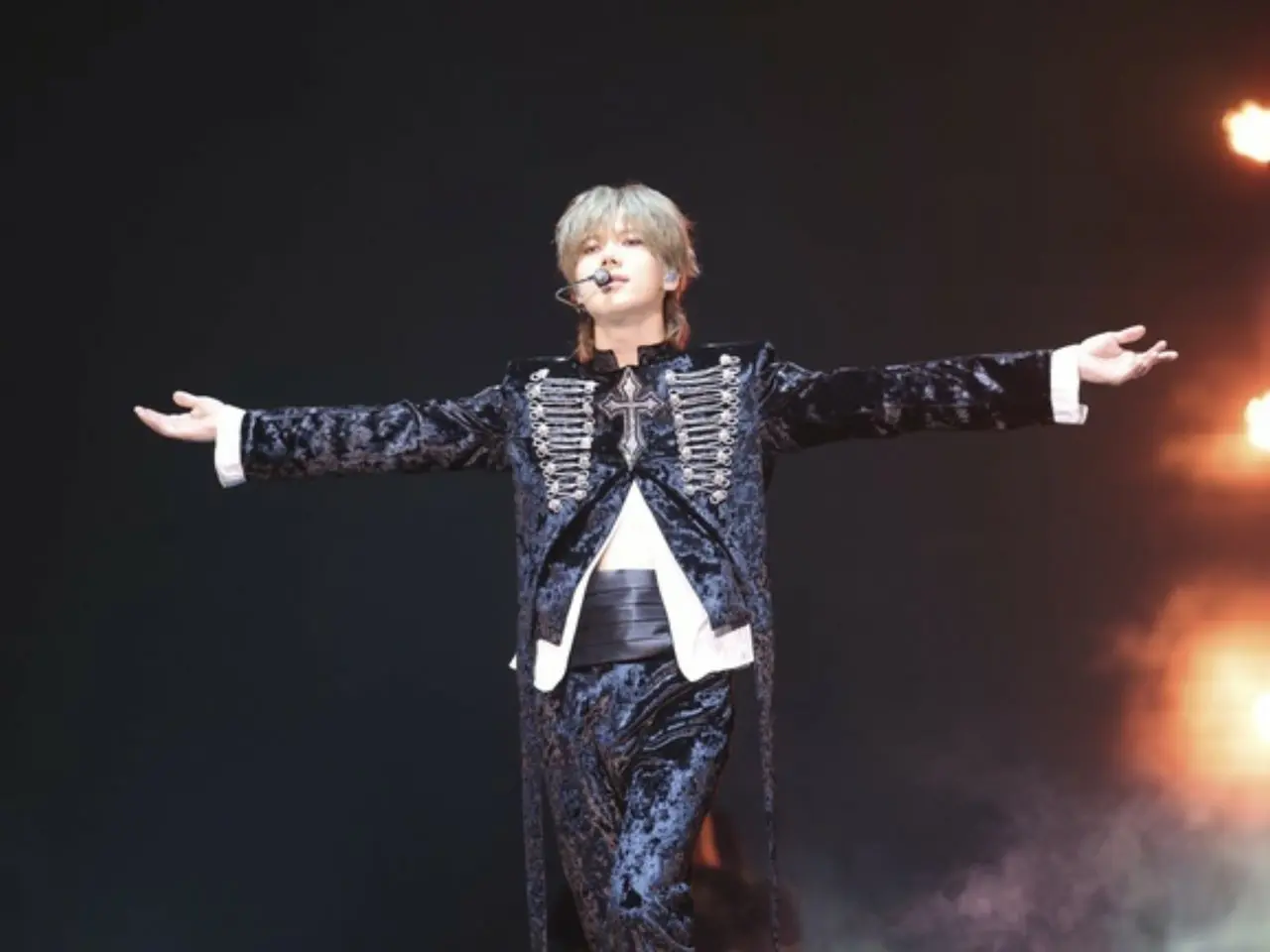 テミンは十字架の構造物につるされた斬新な演出でオープニングステージ「Heaven」を披露し、開始早々から観客を圧倒しました。