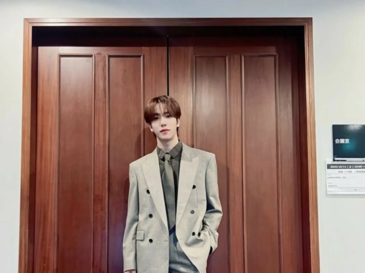 写真には、グレーのスーツを着たカズタの姿が盛り込まれています。