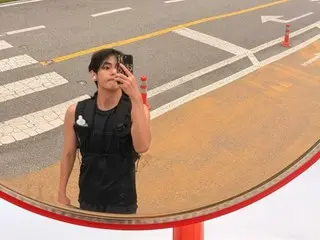 公開された写真の中でVはランニングウエア姿で、ハンガン(漢江)近くの道路を背景に立っています。運動で少し濡れた髪や、額に滲んだ汗が自然と流れ落ち、生き生きとした雰囲気を引き立てます。ノースリーブのブラックシャツからのぞく引き締まった腕の筋肉と肩のラインは、鍛えられた体力と日頃からの自己管理を物語っています。水筒を差し込んだランニングベストを身につけた姿からは、Vならではのこだわりも感じられます。