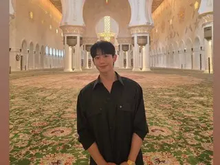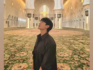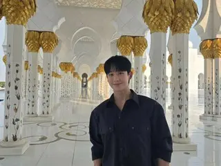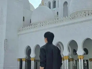 公開された写真の中のチョン・ヘインは、アラブ首長国連邦(UAE)・アブダビにあるシェイク・ザーイド・グランド・モスク(Sheikh Zayed Grand Mosque)で穏やかなほほ笑みを見せています。