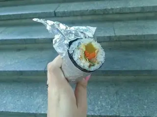 もっともポピュラーなのはやはりキンパ(のり巻き)でしょう。ごはんやさんではお皿に並んだキンパが出されますが、屋台では筒状になったものをまるかぶり!(切り目は入っています)すでにアルミホイルに巻かれたものをパパッと取るだけなので、ほんの数秒で朝食がゲットできます。価格は1200ウォン~1500ウォン程度です。