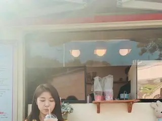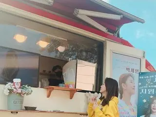 ハ・ジウォンはファンからカフェカーをプレゼントされたようです。世界中の全てを手にしたようなに幸せな笑顔を浮かべて、視線を集めています。