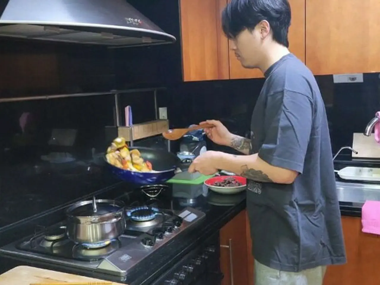 動画にはキッチンで料理をしているホンギの姿が盛り込まれています。